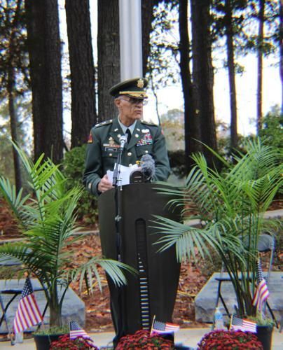 Dunwoody resident and retired Lt. Col. Thomas Ariail, who serves as commander of the local Veterans of Foreign Wars chapter, spoke in front of the DeKalb Veterans Memorial to a crowd of 100.